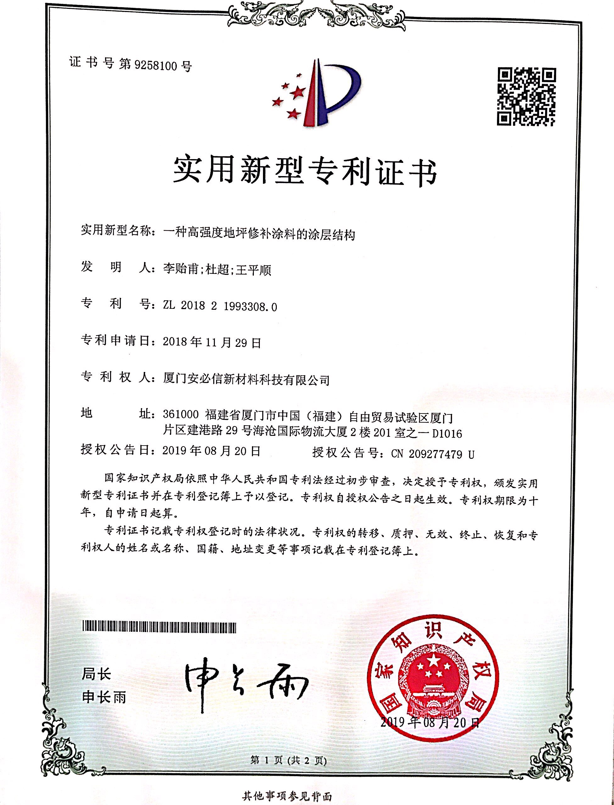廈門安必信新材料科技有限公司水性聚氨酯地坪漆/透水高分子保護劑